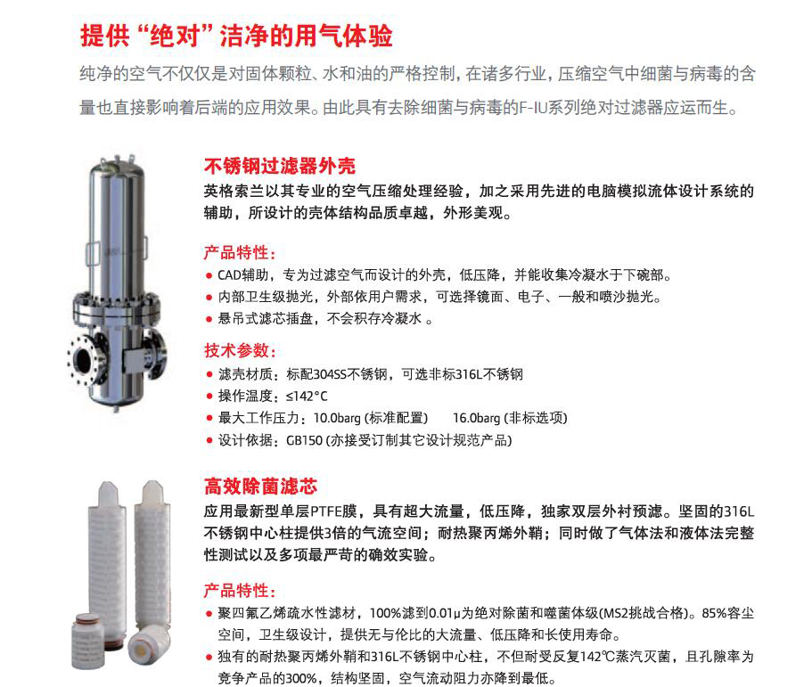 兩級壓縮空壓機廠家純凈的空氣不僅僅是對固體顆粒、水和油的嚴格控制,在諸多行業(yè),壓縮空氣中細菌與病毒的含量也直接影響著后端的應用效果。由此具有去除細菌與病毒的F-U系列過濾器應運而生。