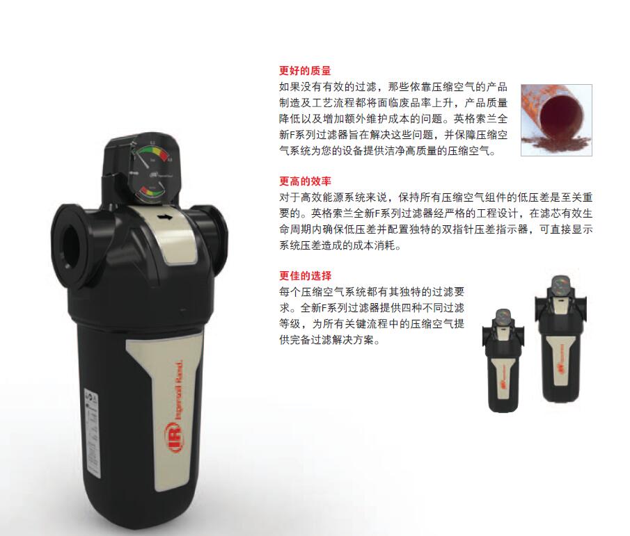 全新F系列過濾器提供品質(zhì)達(dá)到ISO8573空壓機(jī)品牌:1-2010標(biāo)準(zhǔn)要求的潔凈空氣并經(jīng)第三方認(rèn)證符合I5O12500-1標(biāo)準(zhǔn)。多種過濾等級(jí)產(chǎn)品構(gòu)成完備的過濾解決方案,滿足特殊的空氣質(zhì)量要求。